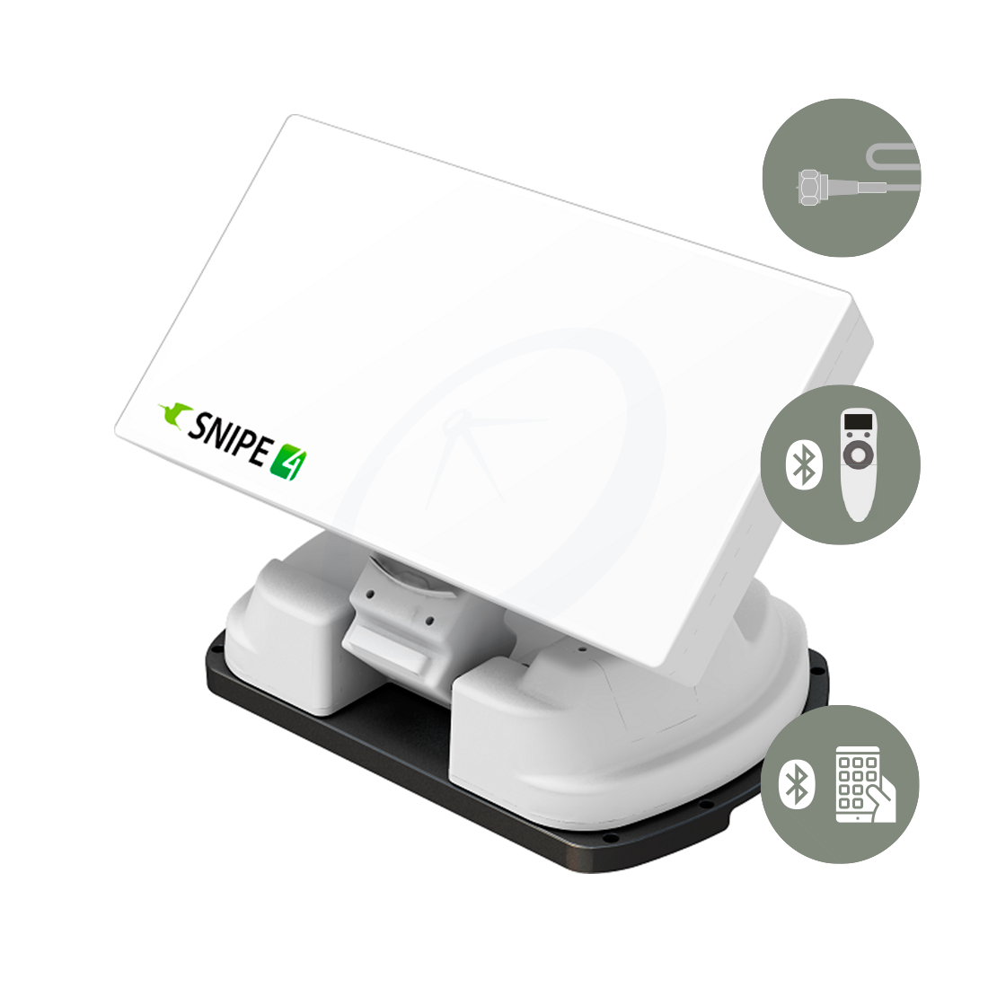 De Snipe 4 heeft een bluetooth afstandsbediening waar mee u alles kunt bedienen. Via een OLED scherm kunt u de antenne status controleren. U kunt overschakelen van de ene satelliet naar de andere door simpelweg op afstand via de tv van kanaal naar kanaal te wisselen, De antenne zal schakelen en vindt de benodigde satelliet binnen 30 seconden.