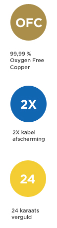 - Koperen geleider en twee lagen afscherming voor otimale signaalwkaliteit