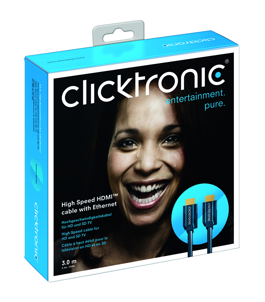 De Clicktronic High Speed HDMI kabel is een hoogwaardige HDMI-kabel met 24 karaats vergulde aansluiting voor haarscherp beeld.