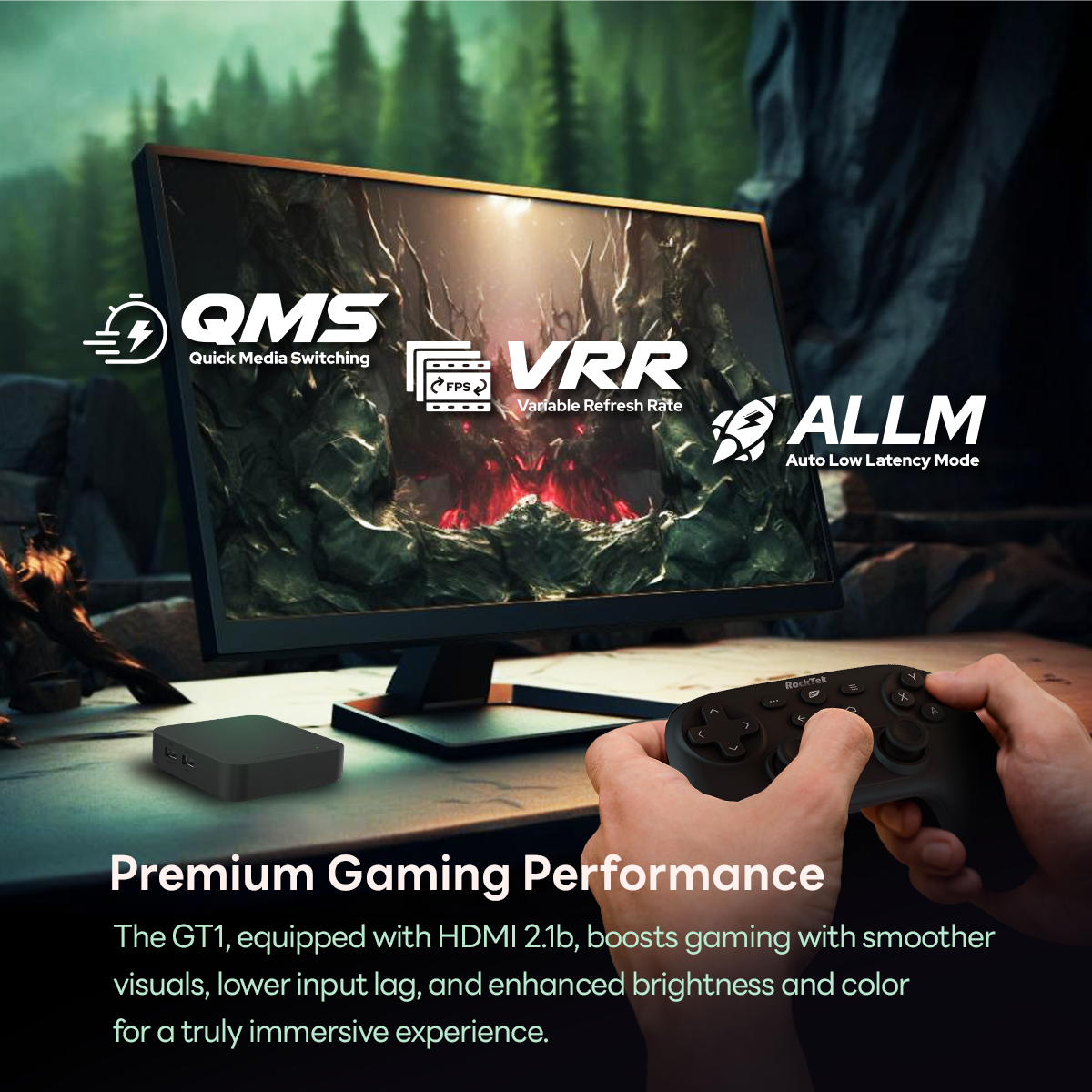 De RockTek GT1 draait op de snelle Realtek RTD1325, speciaal ontworpen voor optimale 4K-streaming. De combinatie van de Mali-G57 GPU en 2 GB DDR4-geheugen zorgt voor vloeiende prestaties, snelle laadtijden en soepele bediening van apps en media.