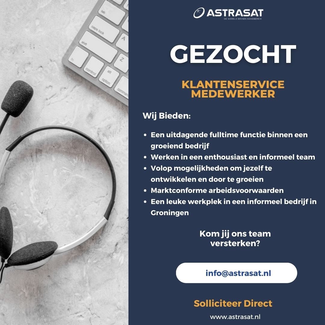 Wil je ook graag werken in Groningen bij Astrasat de specialist van digitale televisie en WiFi oplossingen voor thuis en op vakantie?