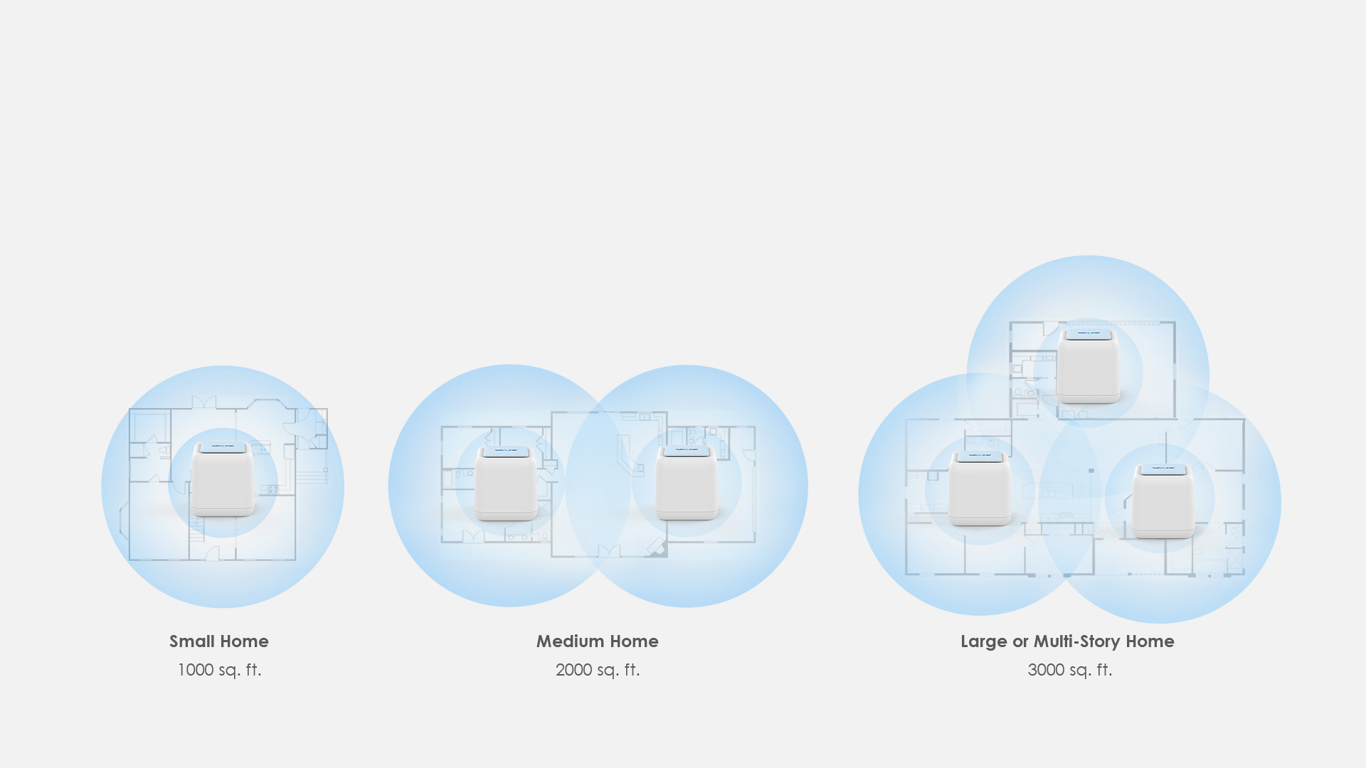 Drie wifipunten kunnen perfect de meeste huizen bedekken. Nadat u een Mesh-netwerksysteem hebt ingesteld, kunt u het systeem eenvoudig aanpassen door meer Wi-Fi-punten toe te voegen voor een grotere dekking.