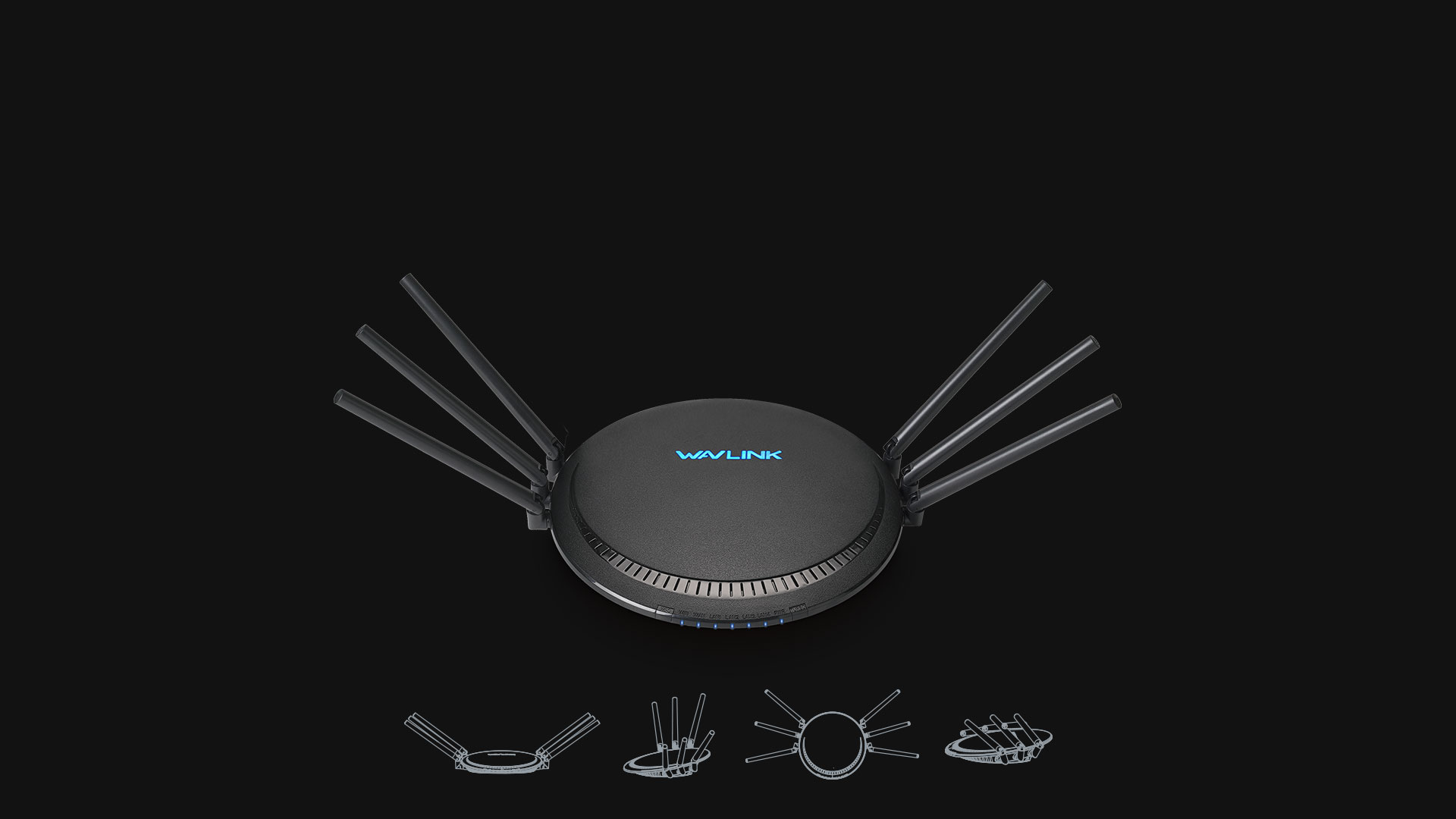 De Wavlink is uitgerust met zes omnidirectionele slimme antennes, zodat deze router het Wi-Fi-signaal overal in huis kan verspreiden, waardoor de dekking van het draadloze netwerk optimaal wordt geoptimaliseerd.