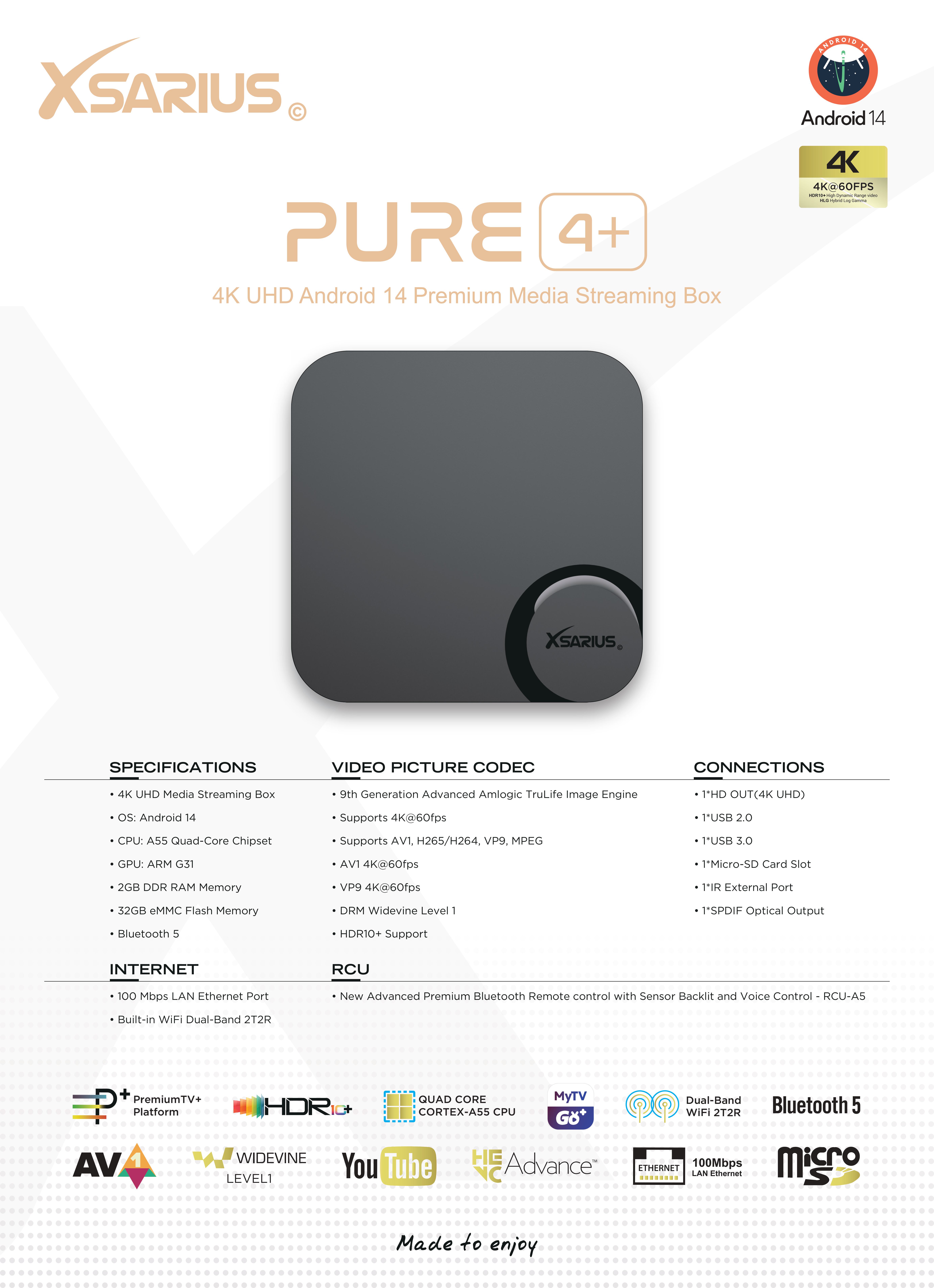 Xsarius Pure 4+ Streaming Box 4K UHD