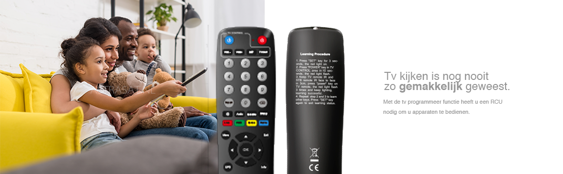 Losse afstandsbediening voor de Xsarius Q1, Q2, Q3 of Q4 met TV programmeer functie waardoor tv kijken nog gemakkelijker wordt.