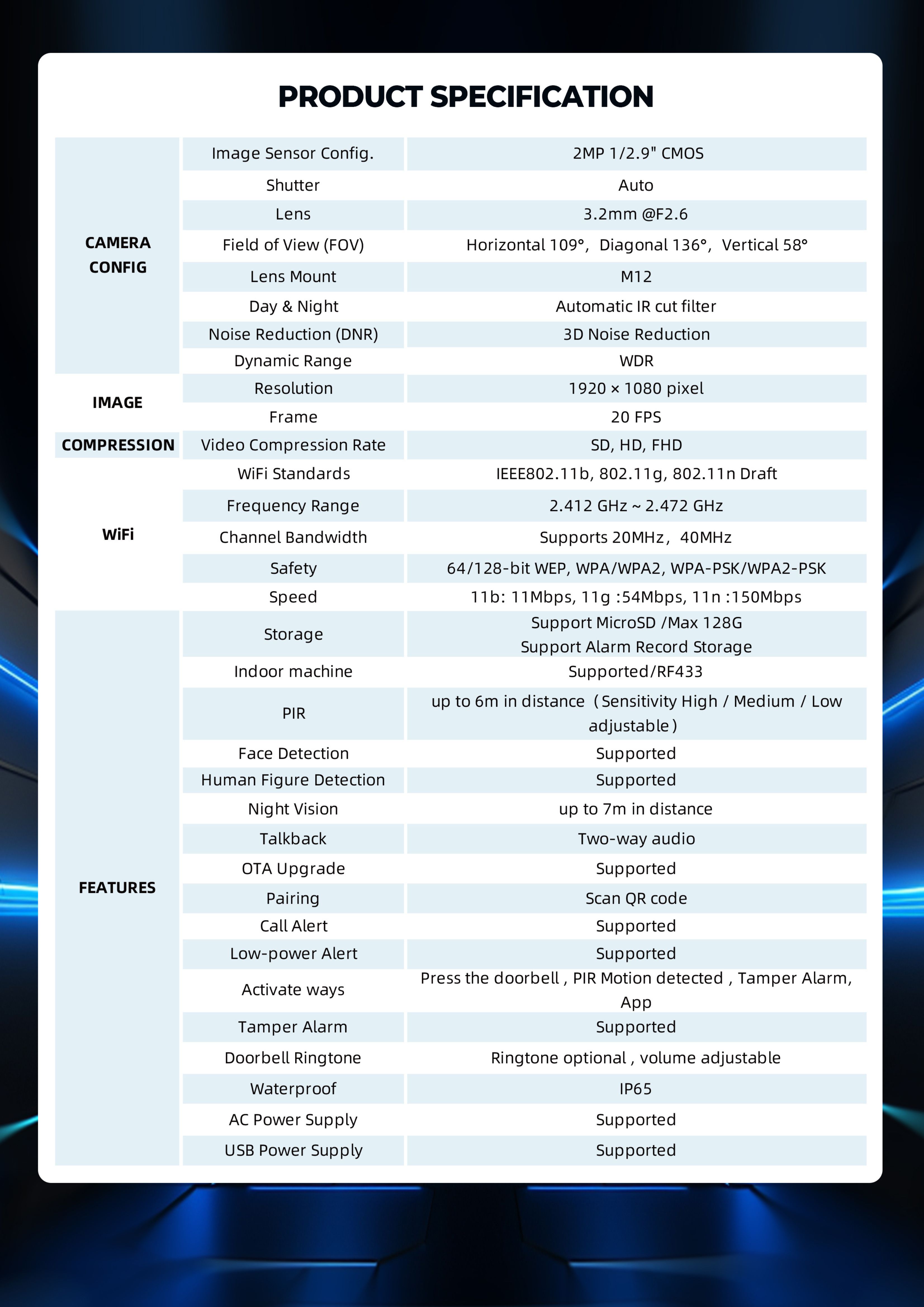 Technische Specificaties – Xsarius Smart Doorbell DB3M